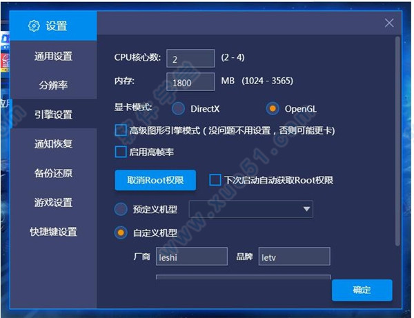 5、支持设置硬件分配,如CPU核心、内存、帧率、垂直同步设定。