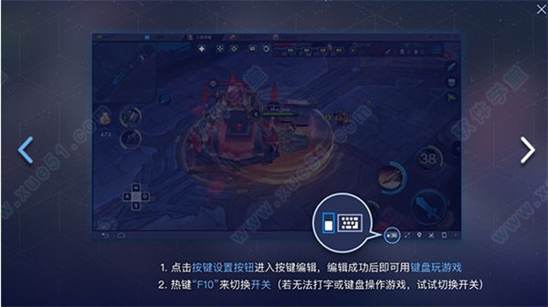 1、打开安装好的蓝叠模拟器,点击按键设置按钮进入按键编辑,编辑成功后就可以用键盘玩游戏了,按键“F10”来切换开关(若无法打字或键盘操作游戏,试试切换开关)。