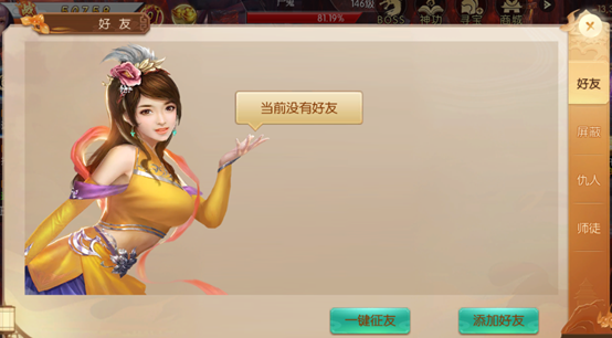 2、好友系统:基础的功能正如大家所理解的,我们可以添加好友,查看好友是否在线,邀请好友组队升级,刷副本,更方便的查看对方资料或者联系到对方,还有一键踩空间便捷的帮助您获得活力。