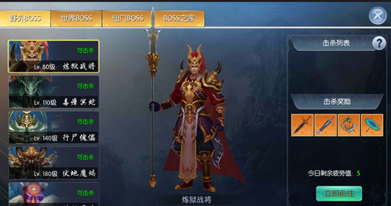 四、挑战BOSS该活动可以说是获得装备的主要来源之一,竞争也是相当之大。每天进入的次数也是有限,如果你想要战斗力比别人高,这是每天一定要坚持做完的。