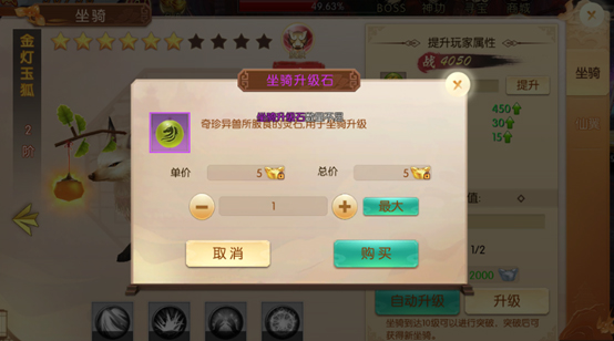 成长:坐骑系统四阶起可以使用,永久提升百分比属性。