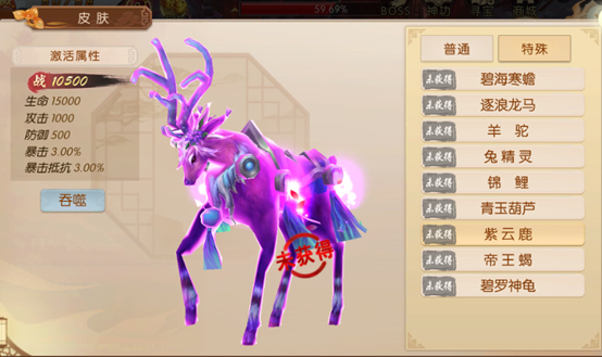 资质:坐骑系统三阶起可以使用,永久提升固定属性。