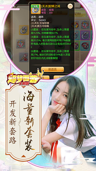 超梦西游无限版,游戏以大胆创新的设想,百变时装,酷炫坐骑,让你的角色成为这个世界中最亮眼的存在,回头率超高。千人实时组队战斗,享受最刺激的冒险体验。新颖独特的世界观,经典回合制战斗玩法,带给你不一样的游戏体验。喜欢的小伙伴赶紧下载吧!