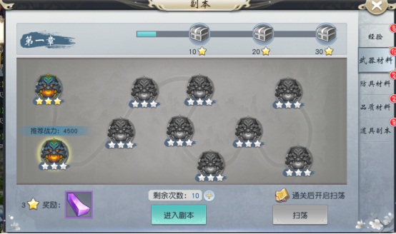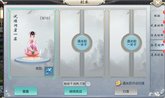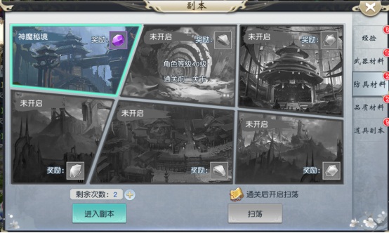 副本主要涉及各类系统的消耗道具产出,供于用户成长