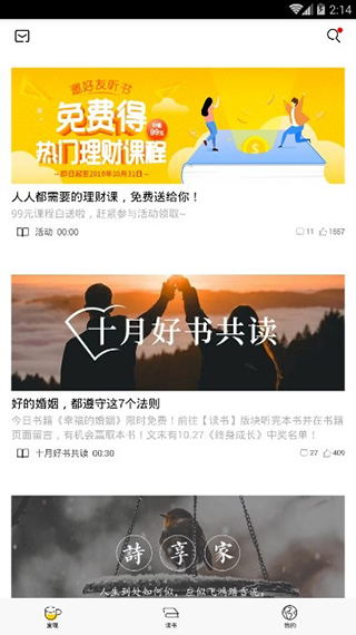 樊登读书APP手机版是一款图书应用,为广大阅读爱好者提供丰富的有声阅读资源,包括各种亲子教育,事业进阶,情感婚姻,传奇人物,每日深度好文与你分享。软件提供了形式多样的精华解读,并以视频、音频、图文等多种形式呈现在APP上进行分享传播。用户可以免费下载樊登读书APP,另外一书一课,一周一本书,一月一门课,帮助企业打造学习型组织。还有樊登小读者是其旗下一款专门给儿童讲读书籍的帮助儿童养成学习习惯。并且会以文字解读和视音频讲解的形式,帮助那些没有时间读书、不知道读哪些书和读书效率低的人群每年吸收50本书的精华内容,让他们养成读书的好习惯。可以和你的小伙伴一起分享书单,相互讨论文学作品等。喜欢的用户可以试试哦。