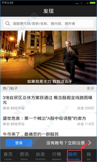 5、进入到发现页面,即可了解最新、最热的财经贴子,同时你还可以搜索你想知道的信息。