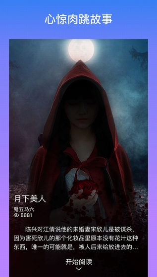 目前,软件团队内共有二十余位专业作家签约入驻,保证平台内容的高质量产出。优质的原创悬疑惊悚小说和边点边读产生的化学反应,深化了惊悚恐怖氛围的营造,给你背脊发凉、细思恐极的阅读体验。