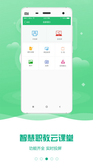 使用者只需要登录"云课堂"平台,进行简单易用的操作,便可快速高效地分享老师的同步教学课件。"签到"功能可有效的约束自己,"测验"功能及时的将自己的学习情况展现给老师,实现了真正的教学互动。
