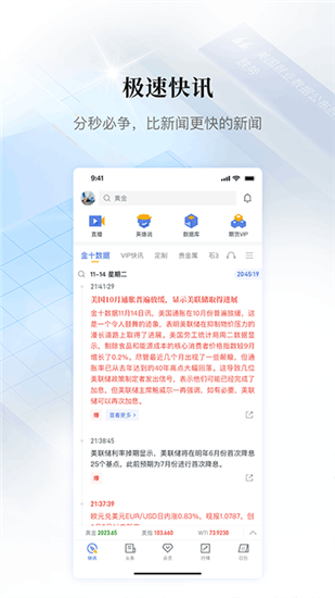 金十数据官方最新版是一款财经资讯阅读软件,它为用户特供了全球各大主流财经频道的精选头条内容,并且实时滚动播报,让用户了解到最新的财经数据,很快掌握最新的信息。作为全球最快的中文财经资讯,它起步于贵金属领域,为炒黄金、炒白银、抄外汇的投资者提供最快的实时全球财经快讯,播发全球财经数据,并且对资讯和数据的特殊要求做了最深入的专业了解,并第一时间将最新、最全面、最准确的新闻内容提供给所有的用户,让您能够在第一时间了解到最新的资讯消息。旨在提供最核心、高价值的资讯和数据。