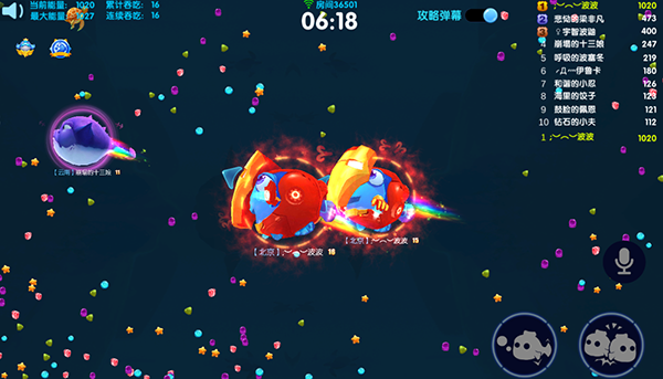 游戏的玩法很多,自由匹配,团战,开房,战队等等,有各种相互匹配组队进行的比赛的玩法,小编觉得最有趣的就是在游戏中大鱼吃小鱼的过程,因为你不知道下一秒会发生啥,也许现在你正在追着他吃,下一秒他会反过来等级比你高吃了你,感觉这样很有趣。