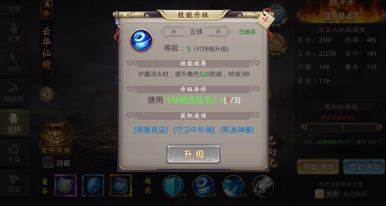 达到特定阶数的仙椅会解锁一个新的技能,仙椅技能为被动技能