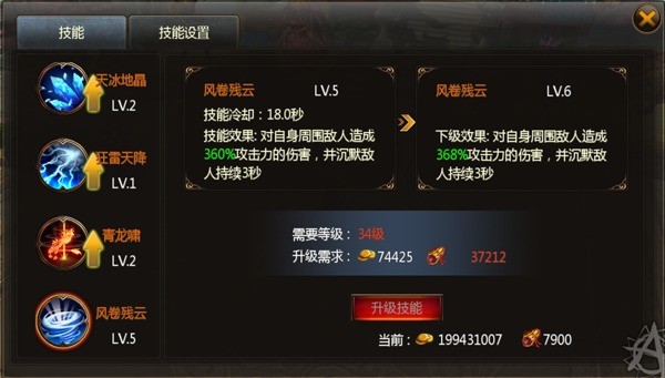 b) 点击下方的技能槽中的技能icon后可选择其他技能替换至该技能槽