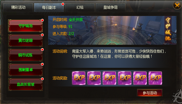 a) 31级以上可开启此副本,点击参与活动即可传送至副本地图。每日可以挑战2次,次数用完则不可进入