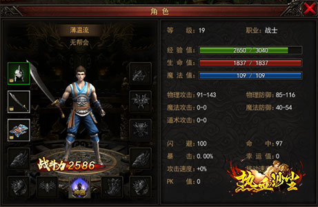 (1)战士的技能主要是单体输出比如落日剑法、风刺剑法和群体技能月弧弯刀,此外还有造成敌方撞开并且麻痹的蛮力冲锋。