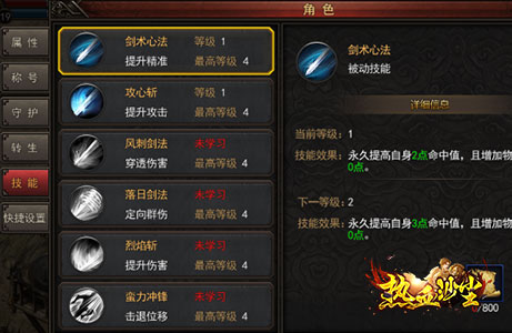 3、每个职业有一个神技,需要消耗神技天卷升级。其他技能需要消耗技能残页进行升级。