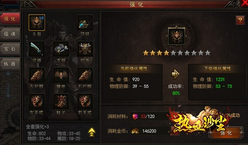 使用强化石强化装备后获得高额属性提升,同时将全身装备强化到一定等级以上时会触发强化套装属性加成,这都是白花花的战力呐~