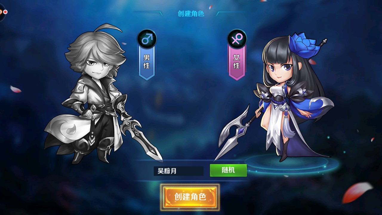 进入疯神之战首先就是创建角色,角色选择性别即可,名字的话,系统的随机名字还是挺好听的。游戏玩法是非常的简单,进入游戏之后会送一个英雄亚瑟,之后跟随任务通过前期的关卡,也能拿到一些武将和小兵,之后随着等级的提升将会开放更多游戏功能,使用这些功能将能够更快的增长自己的实力。