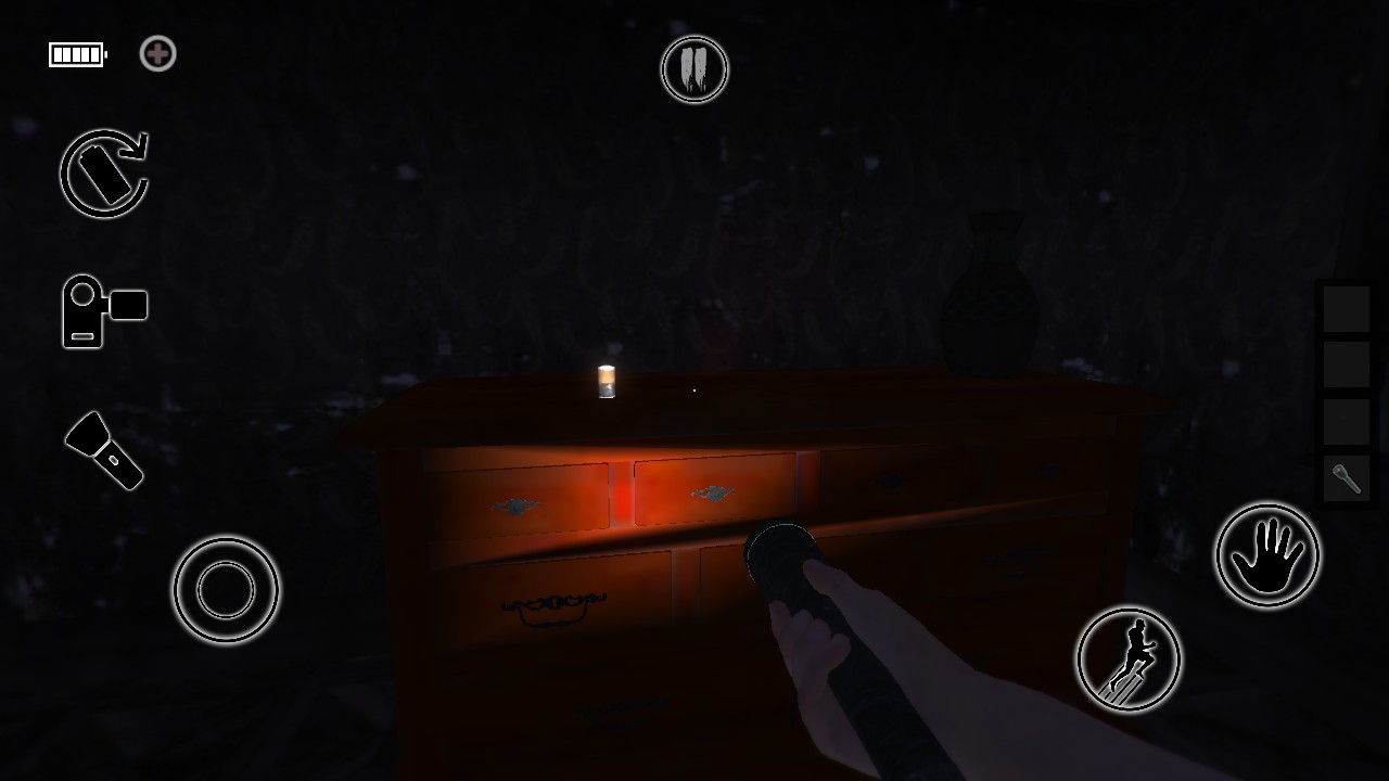 在右边的桌子上可以捡到一个手电筒,对着手电筒点击手型的按钮就可以拾取了。怎么样,有了手电筒是不是好了很多呢。