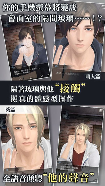 既然是二次元角色,首先要从人设抓住妹子们的心。不得不说,人设相当成功,无论是CG还是3D建模,都透着好看,怎么看怎么美!画风也和市面上其他乙女向游戏有着本质的区别,画风略写实、复古,让人眼前一亮。一个帅小伙可能无法抓住所有妹子的心,于是游戏又推出了另一个与男主性格截然不同的男二,同样帅的不可描述。游戏不光抓住了乙女们的心,也抓住了腐女们的心。男主是个内向的男生,人物的声音也透着点小害怕,小傲娇,小颓废,让妹子们心生怜爱之心。就连声优本尊也长得十分清秀呢!
