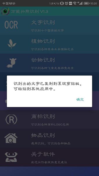 4、识别好了之后就可以看见一下的文字,直接点击复制到剪切板就可以了