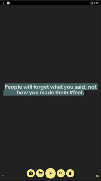 Legend安卓版是一款对于用户来说非常实用的图像处理小工具,软件可以帮助用户对图片上面的文字加上各种各样的效果,让人对那些文字瞬间产生不一样的感觉。软件还可以将图片保存为GIF的格式和短视频,完美的展现自己的风格,让你的图片更具特色。用户如果遇到自己喜欢的图片或者有好看的文字也可以下载下来,然后可以通过Legend将你喜欢的照片图片添加进去作为精美的文字背景,有非常多的文字特效。你可以我字体设置像ptp当中的文字一样滑出的效果,对于特别的字体你可以进行更改处理,特效的大小也是可以修改的,还可以对图像进行裁剪,完全随心所欲,你想怎么弄都可以。将设置好的图片保存在手机里,然后你就可以将这些图片发朋友圈啦,让你的