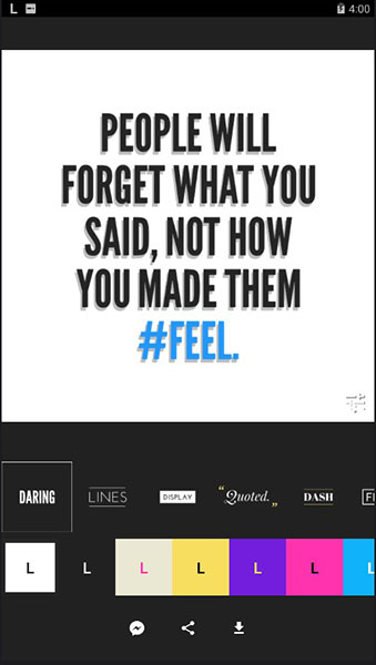 颜色选择:直接在分享屏幕中便可从 20 种预设中选择您最喜欢的颜色/背景/滤镜 - 减少了一个步骤,并且开辟更多种,变得更完美的可能!