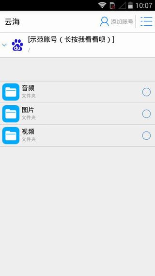 1、云海app可以添加无限多个百度网盘、115网盘的账号,同时使用多个网盘的内容。