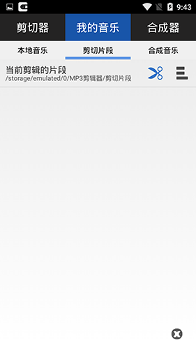 mp3剪辑器手机版是一款能够在安卓手机中直接进行音频剪辑操作的app。这样可以让音频剪辑变得更加方便。对于这种操作细节比较多的项目,当然是越简便、好用越受欢迎了,现在能够在手机中直接进行音频剪切,当然是方便了大部分的用户。该软件没有复杂的操作,用户直接将音频导入后,选择自己想要保留的部分直接剪切、保存即可。除了剪切外,该软件还有音频合成功能。同样将需要合成的软件导入后直接保存即可。所有保存后的文件都将在我的音乐项目中。方便用户查看。对于简易的音频剪辑功能,该软件已经是应有尽有了。相信在日常的处理操作中,其可以帮互助到非常多的用户。也相信大部分用户都会坚持使用该软件进行音频处理。如果您也有这方面的需求话,欢迎前来下载mp3剪辑器app进行使用。