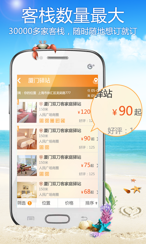 1.提供超过3万家特色客栈、青年旅舍以及家庭旅馆在线预订