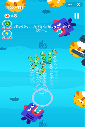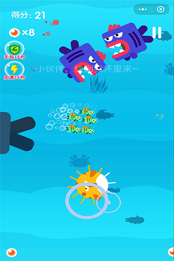 3、小青鱼属于一种群游活动,只要还有一条小青鱼,游戏都不会结束哟!