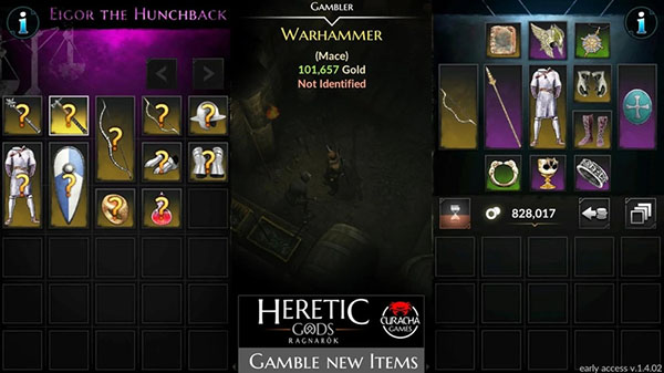 异端神的一个非常重要的方面是战利品。你可以找到和装备成百上千不同的对象,包括斧头,头盔,手套,靴子,盔甲,盾牌,弓箭,剑,戒指,等等。在村里,此外,我们可以用它的居民进行交易,甚至手艺自己的项目。