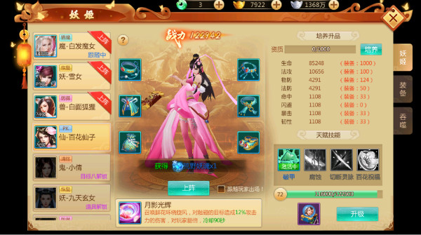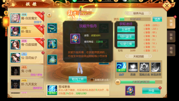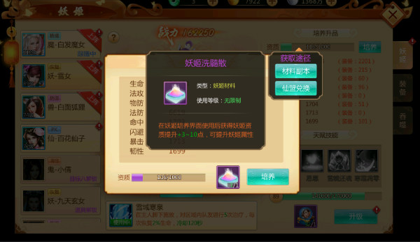 妖姬系统是可以极大提升战力和属性的强力收集,培养玩法系统。
