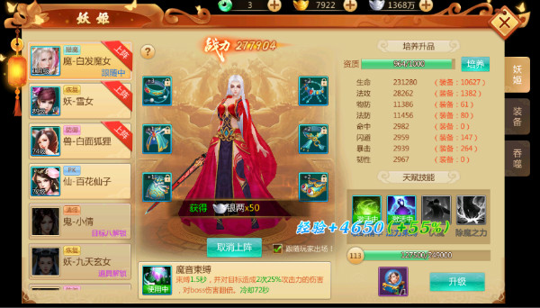 通过妖姬的收集和培养,可以轻松的获得强大的战力。