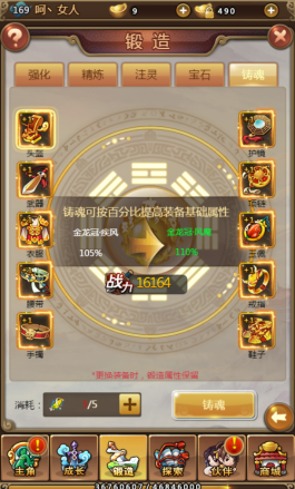 帝战装备的主要成长方式,包括强化、精炼、注灵、宝石、铸魂等方式,分别消耗不同的道具,从不同属性方面提升装备强度。