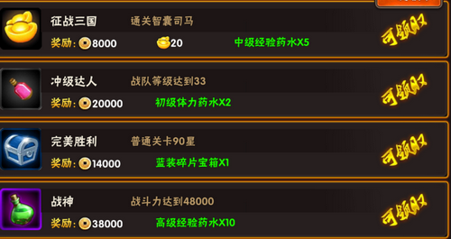 4、达成成就可以领取不等的元宝奖励