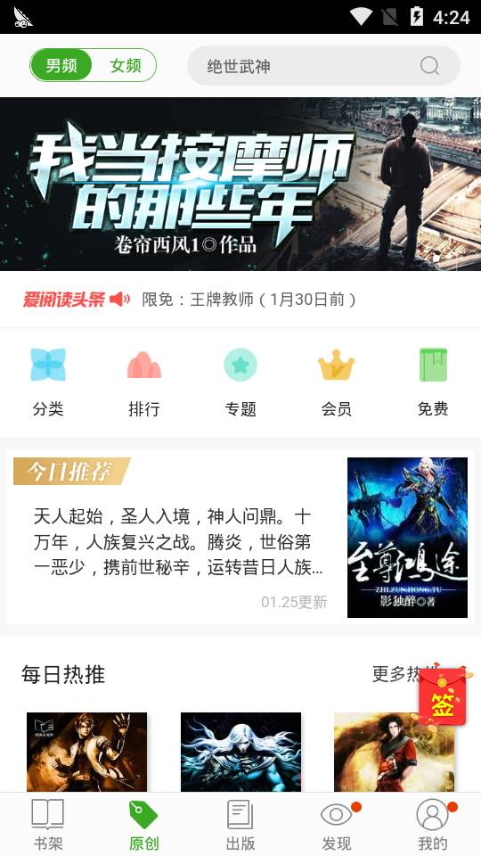 爱阅读app提供海量网络原创文学、畅销书、出版物阅读