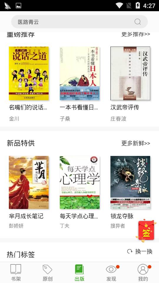 【海量书库】30 万册图书书城,包括了各种精品出版物与网络原创小说。