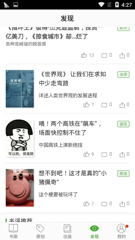 在书架界面可以查看自己已经收藏的书籍,这里也会有一些系统推荐的书籍。