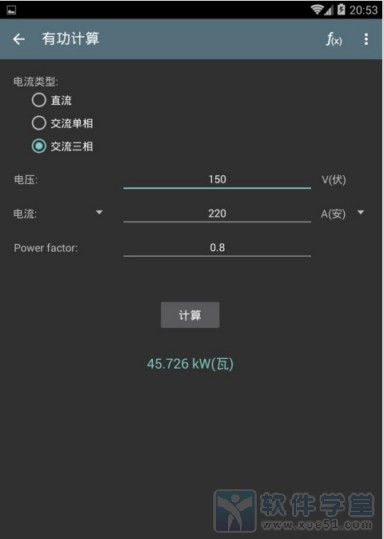 电工计算器app安卓版是一款专为电工行业而打造的手机计算软件,能够满足用户在平时的计算需求,软件根据电理学而制作,同时融入了电工在实际的计算需求,为用户提供了电线截面计算、的电压降计算、电阻计算、配色颜色代码等多达几十种电工计算,其计算的结果十分的准确,而且在操作上十分的简单,电工计算器的用户仅需输入相应的参数即可自动完成计算,极大的提高了计算效率,是电工必备的辅助小助手!欢迎下载体验!