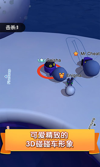 这款雪球大作战的玩法很是简单,但是很有挑战性,首先点击开始匹配,很快就可以是一局,很快也可以结束一局,进入游戏之后完全看自己的操作,以及那个风骚的走位,当您击败一个玩家,自己会变大,变大离胜利也越来越进了,只有您击败所有玩家之后才算胜利!