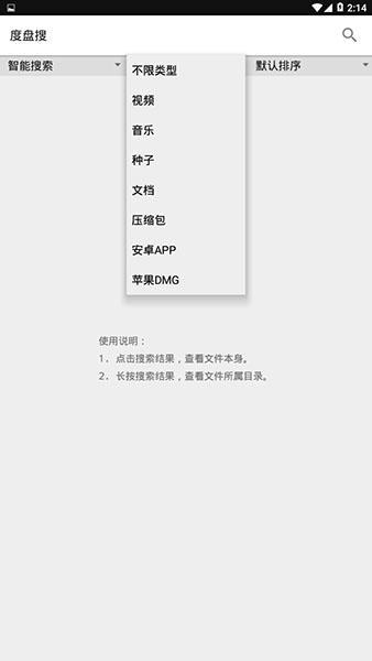 2、针对的是资源搜索下载,例如电视剧、电影、音乐和书籍、种子、文档以及压缩包等等多种,整个应用界面简洁无任何的广告;