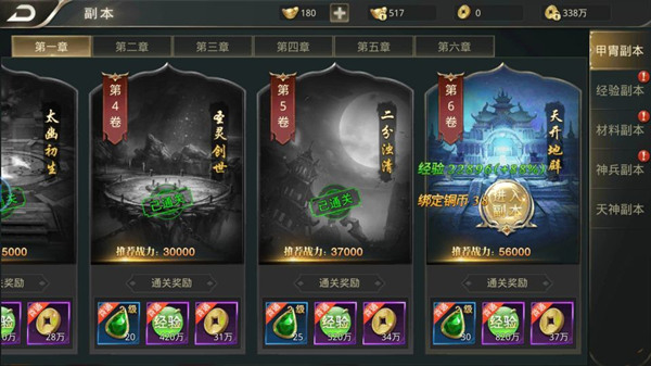 登录福利赠送的经验丹先不使用,继续通过完成主线任务提升等级,当等级达到63级后开启经验副本