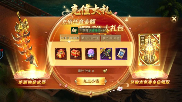 小编建议开服首日进行首充还是有必要的,首充获得的凡品2阶武器能提升较多伤害,提高打怪的效率,而且全地图免费传送能快速的做任务,经验副本能有额外的经验收益,另外首充赠送的超级升级丹在79级使用收益最高哦。