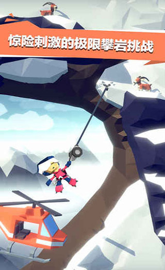 绝地大冒险旧版是一款充满趣味的休闲冒险小游戏,游戏以Q版的卡通画面呈现,操作十分的简单灵活。作为一个救援队员你需要去雪山等地方救援被困的人员,开局一把钩子,而后你可以在商店里面更换更好的道具以便你可以适应各种不同的山脉去救人。游戏有着丰富的故事背景,5打特色山脉,46个关卡等你来挑战,3D模拟攀岩,给玩家真实还原攀爬的手感,玩家需要在游戏中不断的攀登和跳跃,利用物理吸力,不仅要躲避落石、瀑布、雪崩等自然障碍,还要躲避各种凶残的野兽袭击,如果不小心产生小小的失误都有可能引发各种危险。在游戏中还有探测雷达等特色道具可以使用,玩家需要充分的利用这些道具,能够很好的帮助你通关并且完成救援任务。玩家只有克服重重困难、跨过重重阻碍和挑战,最终成功的攀登上山顶。