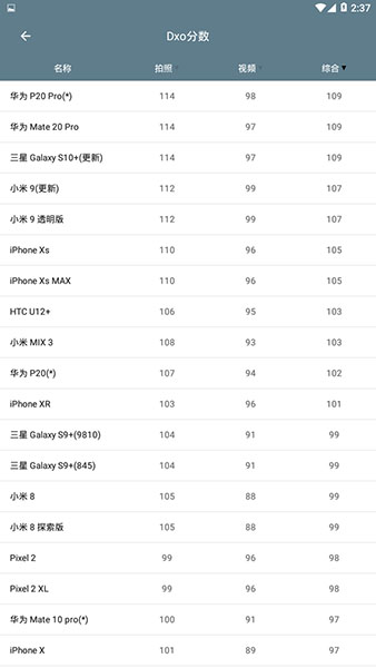 DXO分数列表:了解手机的拍照、视频得分