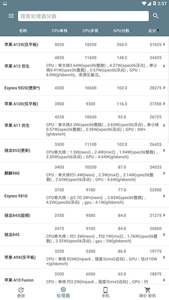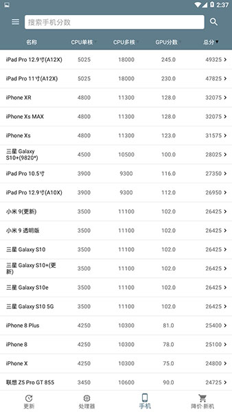 手机评分:查看最新的手机CPU单核分、多核分、GPU分、总分