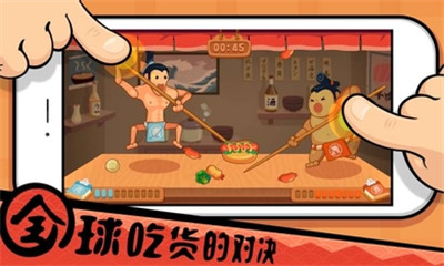 你胖你先吃手游官方版是一款非常有趣的动作休闲游戏。游戏以对战斗的模式为主,两个瘦子拿着长签去刺实物,要将食物塞到对方的嘴里让瘦子变成胖子直至对方吃不下为止才算获胜,当然玩家在进攻的同时也要抵挡住对方塞过来的食物,不然自己先比对方吃的多就输了,游戏里的食物有花椰菜,鱼丸,香肠,虾尾,以及大热狗,其中大热狗分量最多两三个大热狗下去就能变成大胖子。游戏中还给玩家准备了大量的任务以及皮肤。玩家需要通过赢得游戏去解锁这些东西。每赢得一场就会获得相应的奖励。游戏还有吃货大比赛模式,玩家可以和不同的玩家一起进行游戏,还可以选择与好友一起看谁先被喂成大胖子。快来下载吧!跟你的好友一起战斗一番!