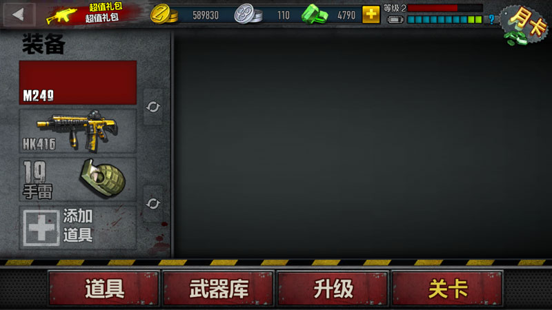 进行金币等消耗品的购买。所有的武器您都将可以升到顶峰,喜欢这款游戏的朋友不要错过了。