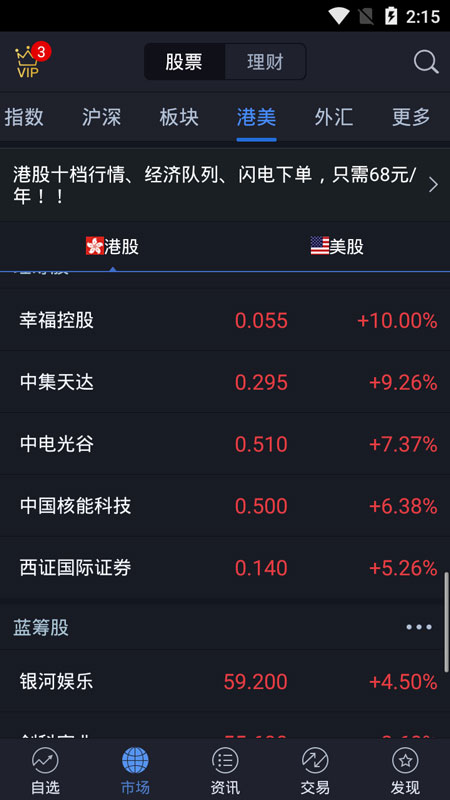 3、市场页面就将所有的上市股票都罗列出来了,你可以进行筛查或直接进行相应股票的搜索。