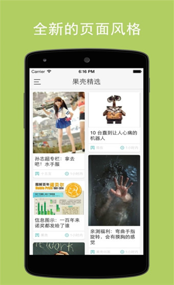 果壳精选app这是一个能够让你足不出户就知晓天下事的资讯阅读软件,该软件内有非常多种类的资讯新闻以及知识,能够让喜欢宅在家的小伙伴们学习到更多的知识,以及分享知识。该软件是由果壳网专门打造的一款手机客户端,里面的内容与果壳网的资源是实时同步更新的,更加方便了用户对于科技资讯等知识的了解,每天都能够给用户推荐最热门的果壳文章、问答、小组帖,让用户可以轻易的获取到最新鲜、有价值的生活知识和科技资讯。这款软件能够在你看电影或者听音乐的时候同时获得更多有关于这个世界的知识,是一款行走的知识宝库。对于喜欢科技以及自然方面的小伙伴们来说这款果壳精选app安卓版能够给你们带来不一样的全新世界,在这里你能能够获取更多的知识。在获取知识的同时,也可以在这里结识更多志同道合的朋友,跟他们一起探索新的科技知识,翻开新的篇章,改变自己的文化生活,让自己丰富起来!